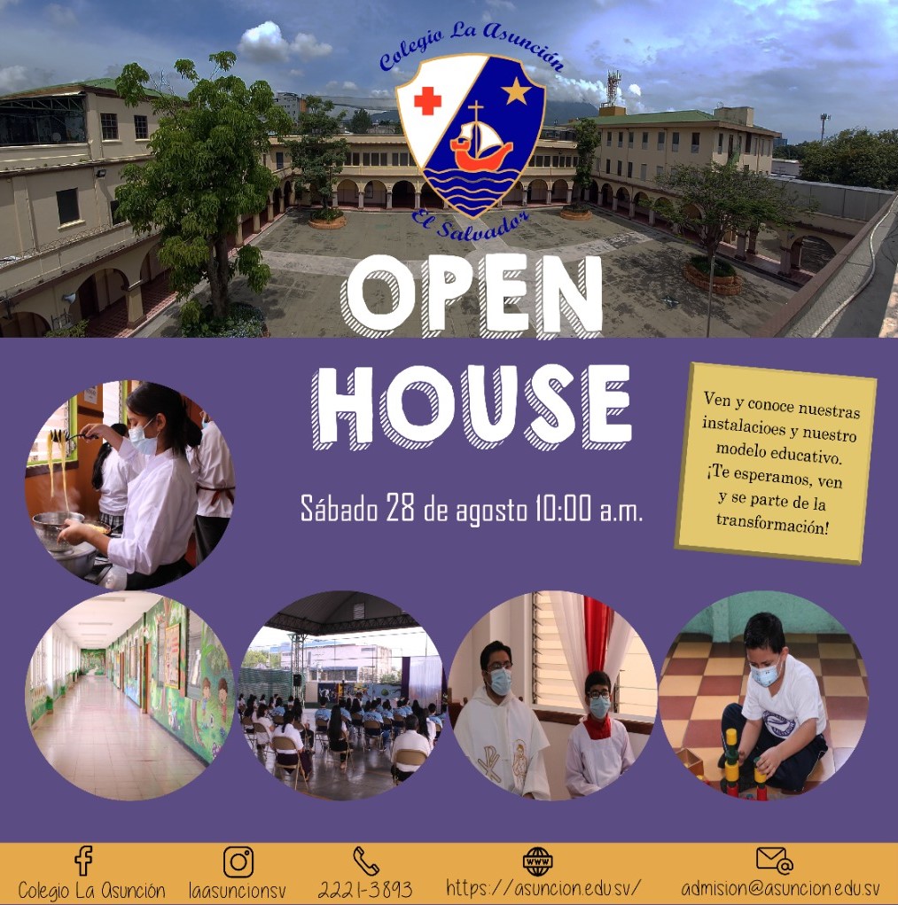 ¡Sé parte de nuestra familia! Te esperamos el día sábado 28 de agosto en nuestro primer OPEN HOUSE a las 10:00 a.m. Confirma tu asistencia: admision@asuncion.edu.sv ¡Ven y se protagonista de la transformación!